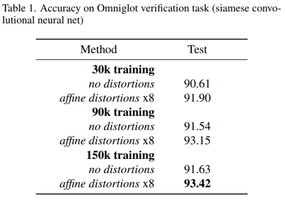 추가적으로 transfer learning 없이 MNIST dataset도 10-way 1-shot classification을 진행했는데 1-Nearest Neighbor보다 더 좋은 성능을 보였다. 즉, 추가적인 학습 없이 Omniglot dataset으로만 훈련한 모델이 MNIST dataset에서도 어느 정도 훌륭한 성능을 보이고 있다는 것은 모델을 학습할 때 feature가 generalization을 만족스럽게 했다고 평가할 수 있다.